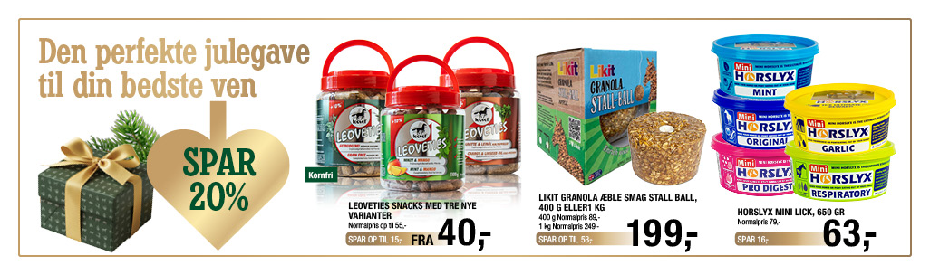 For at forkæle din hest eller bruge belønningsbaseret træning kan du også udforske vores udvalg af hestegodbidder. Disse lækre godbidder kommer i forskellige smagsvarianter og størrelser, så du kan finde den perfekte belønning til hesten. Vores godbidder er nøje udvalgt for at sikre, at de er velsmagende og samtidig sunde for din hest.